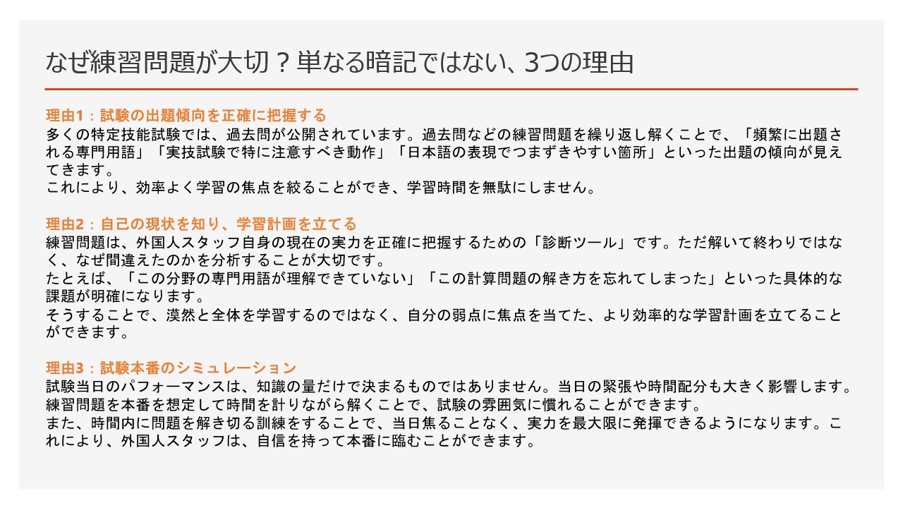 特定技能2号移行を目指す企業向け|練習問題に取り組む意味と学習支援のポイント