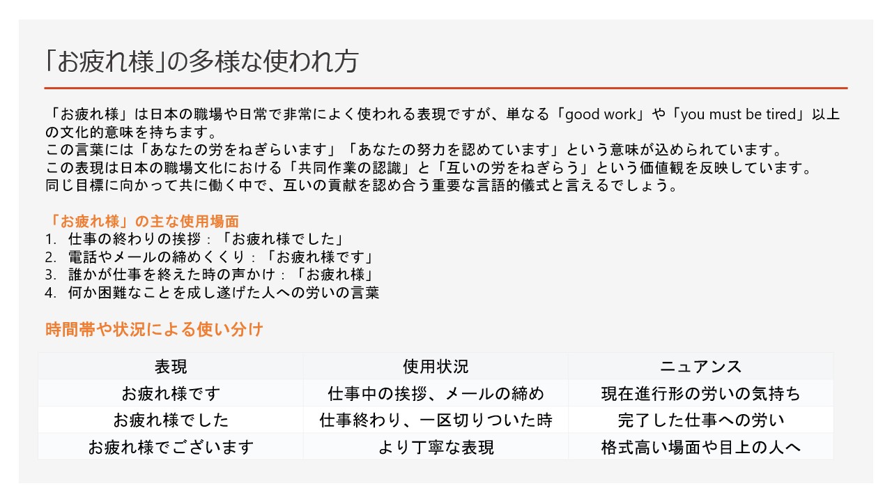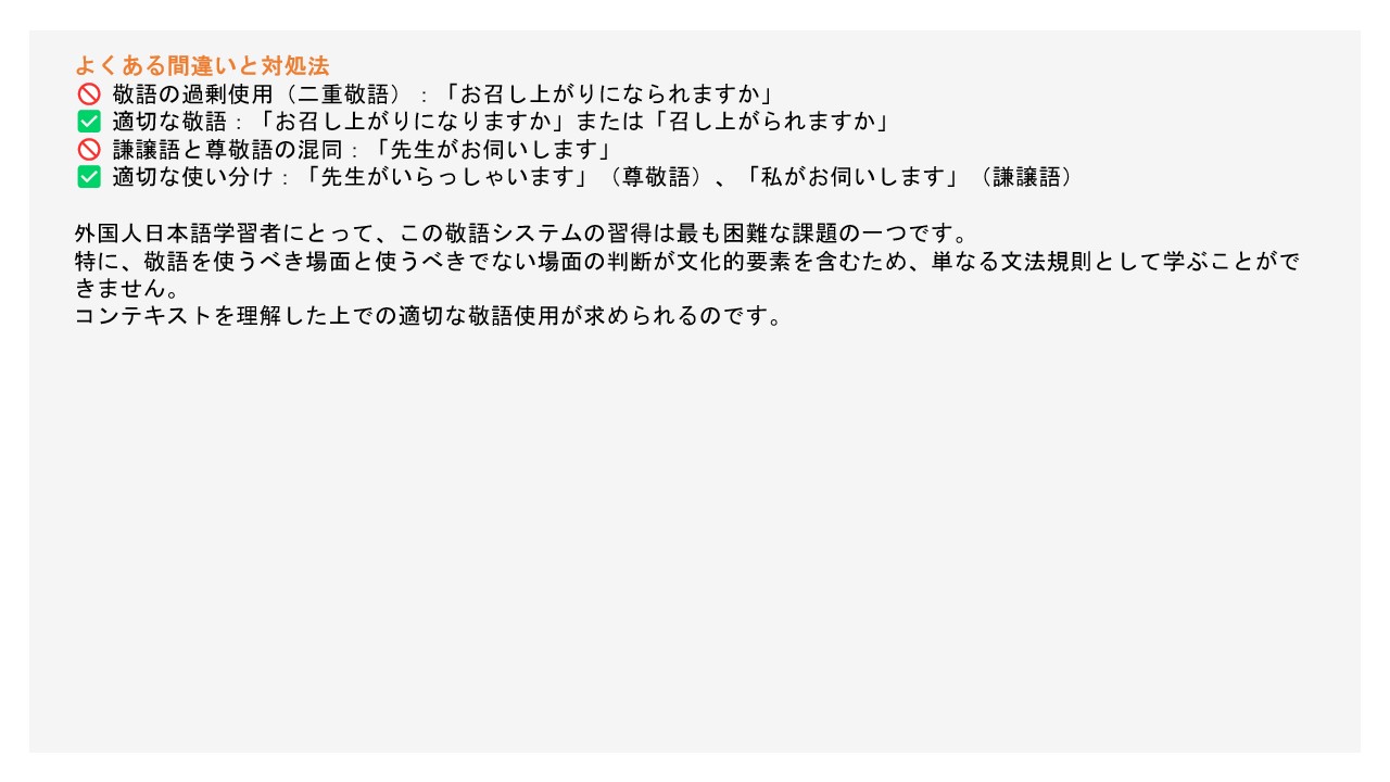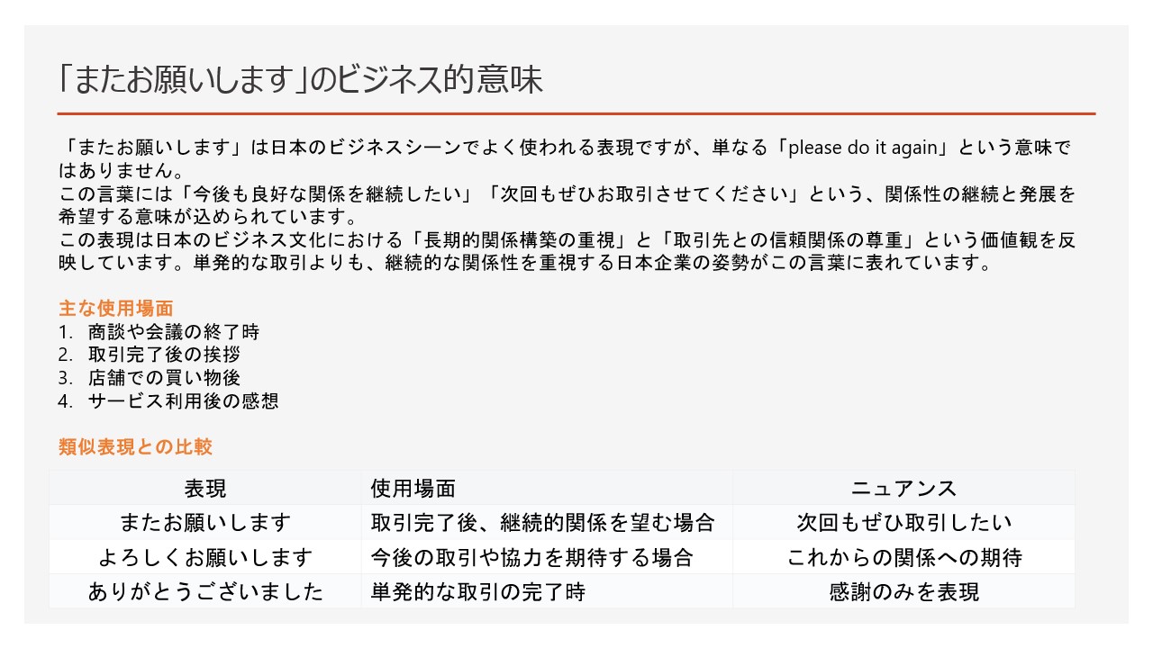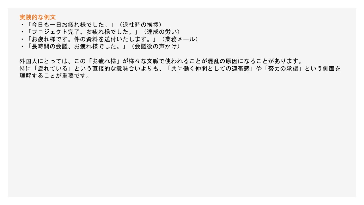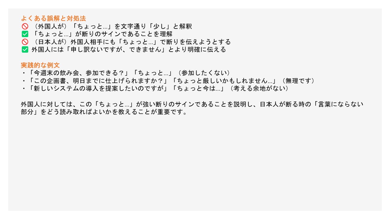 お知らせ 日本語教育 外国人に説明しづらい日本語表現10【文化背景から理解する日本語】 【2025】外国人にひらがなを覚えてもらう方法は?学習方法をわかりやすく解説 この記事を書いた人 chd43848 関連記事 【2025】外国人にひらがなを覚えてもらう方法は?学習方法をわかりやすく解説 2025年12月1日 外国人に説明しづらい日本語表現10【文化背景から理解する日本語】 2025年11月17日 日本語会話練習の効果的な方法・進め方は?外国人材向けの実践的トレーニング方法 2025年11月14日 介護の日本語とは?外国人材への教育の進め方と必要な支援体制を解説 2025年11月13日 外国人労働者が日本語を話せないときの対応方法|企業がすべき支援と対策を解説 2025年11月7日 特定技能2号移行を目指す企業向け|練習問題に取り組む意味と学習支援のポイント 2025年11月6日 特定技能外国人の採用面接で質問することは?質問例と注意点を詳しく解説 2025年11月5日 特定技能の試験問題を分野別に解説!入手方法から学習の進め方まで 2025年11月4日 コメント コメントする コメントをキャンセルコメント ※ 名前 ※ メール ※ サイト 次回のコメントで使用するためブラウザーに自分の名前、メールアドレス、サイトを保存する。 上に表示された文字を入力してください。
